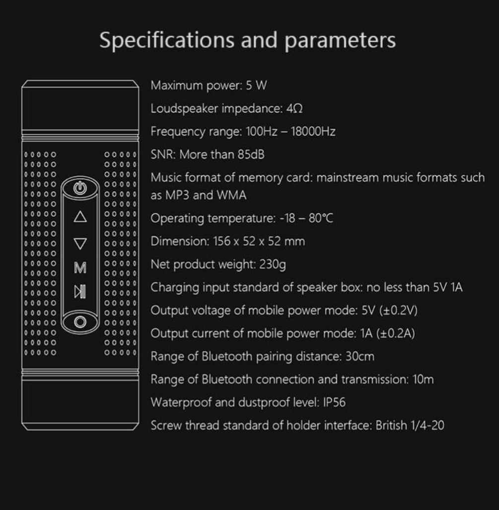 Las celdas de batería de alta intensidad y alta calidad de 5200 mah pueden cargar todo el teléfono una vez y media, reproducir música durante 30 horas e iluminar con luz brillante durante 20 horas.